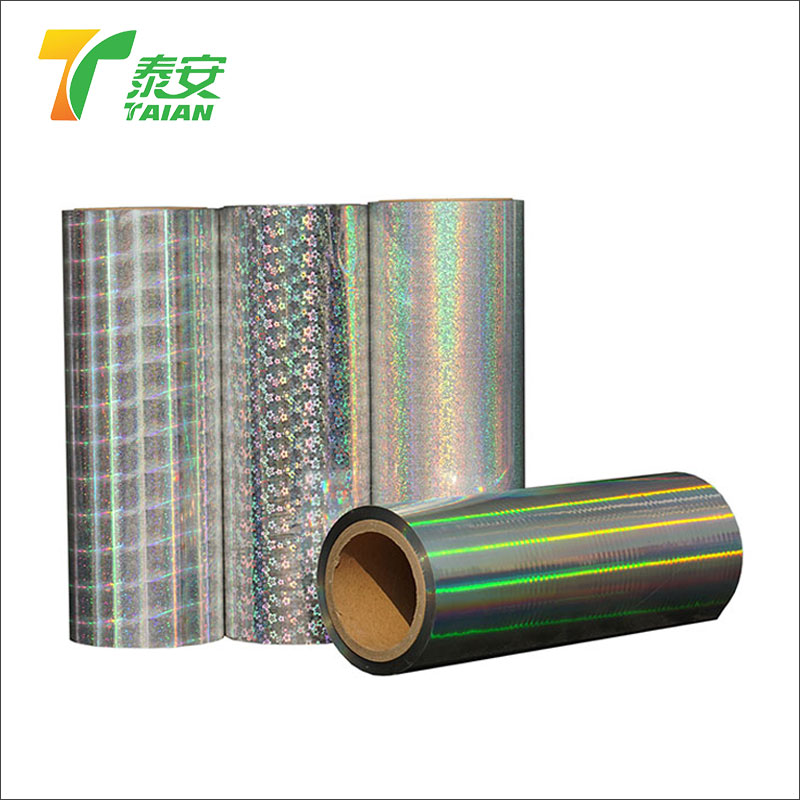 TAIAN میٹلائزڈ ہولوگرافک تھرمل لیمینیشن فلم . مواد Bopp/pet Metalized ہولوگرافک پر مبنی فلم اور Eva hot glue ہے . اس ہولوگرافک فلم میں 1 سو سے زیادہ پیٹرن ہیں، جیسے ہیرے کے پیٹرن، دل کی شکل، منی چمک، نقطے، پانی کی لہریں، پھول اور اسی طرح. ڈیزائن بھی اپنی مرضی کے مطابق کیا جا سکتا ہے . یہ فلم کی قسم پرنٹ شدہ تصاویر کی رنگینیت اور اس کے منفرد لیزر پیٹرن کے ذریعے اس کے اثر کو بڑھا سکتی ہے، اس ڈیزائن کے پرنٹنگ پر متعدد رنگوں کے اثرات ہیں۔